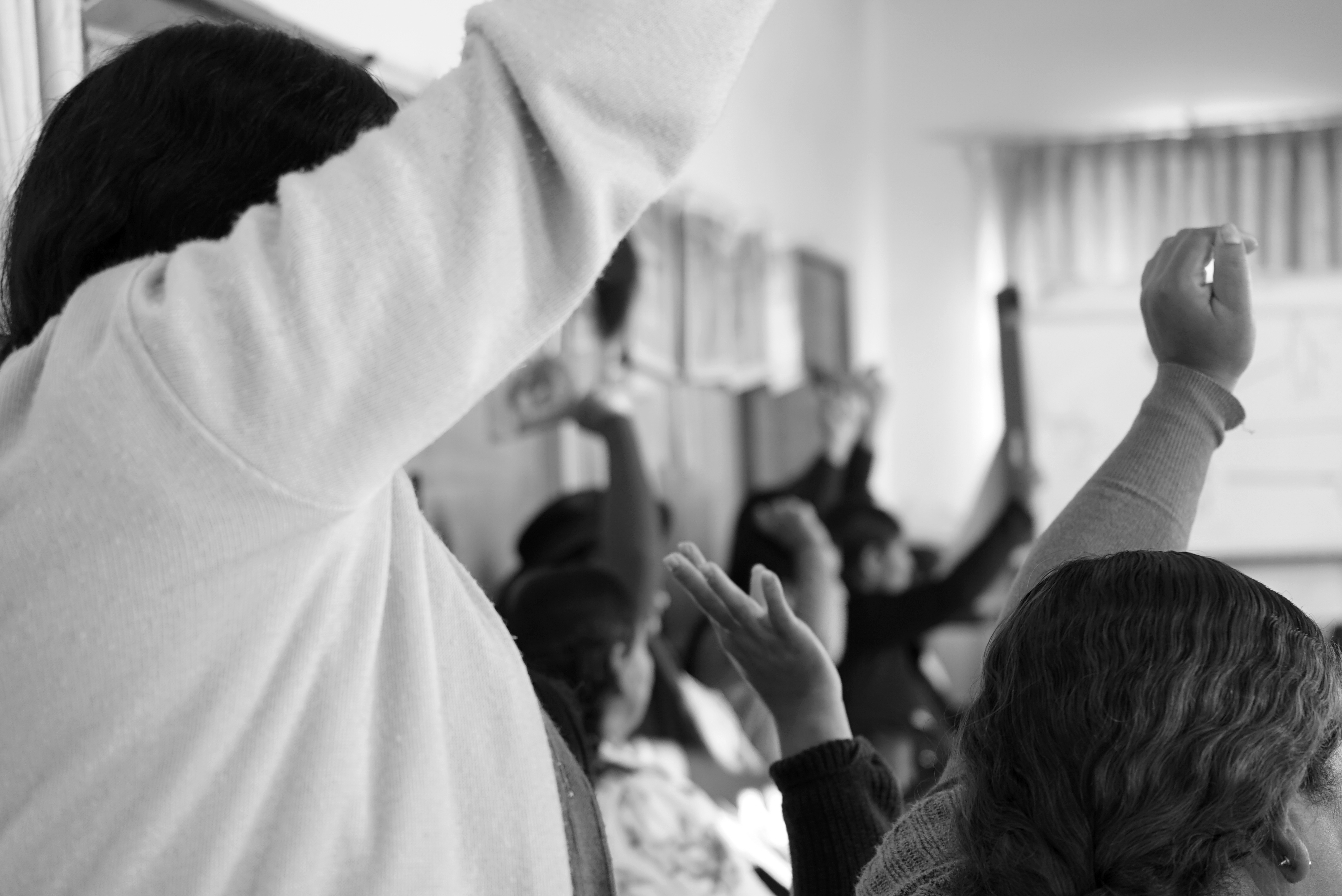 3 channel video installation, color, 00:15:19. The long-term project explores performativity in film. In 2018 and 2019, I documented the meetings of the Bartolina Sisa National Confederation, one of the largest indigenous women’s organizations in Bolivia, advocating for political participation, land rights, education, and empowerment. The work also documents the therapeutic practice of psychodrama, led by Karin de Fries, in both the University of Psychology in Sucre and the Juana Azurduy Women’s Center. The installation shows moments from these sessions alongside the Bartolina meetings, highlighting collective processes and performative gestures. Only a small selection is presented here; further material can be shared upon request in order to protect the women portrayed.